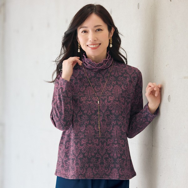 シックな色合いで繊細に描きだしたダマスク柄のプルオーバー。