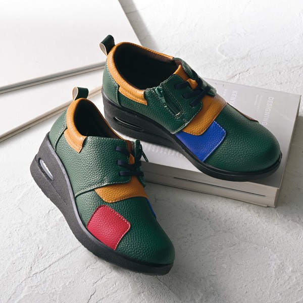 カラフルなパッチワークデザインがユニークなエアソールウォーキングシューズ