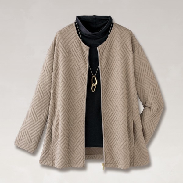 ゆったりリラクシーに羽織れて、立体的な織り柄が上品見え。