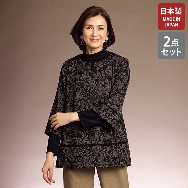 アンサンブル レディース おしゃれ ミセス シニア ファッション 50代 60代 70代 80代 百貨店通販販売商品 ニットちりめんキーネックアンサンブル