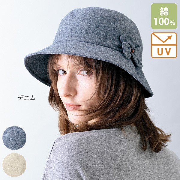 サイドの花モチーフがポイントの綿100%ハット。