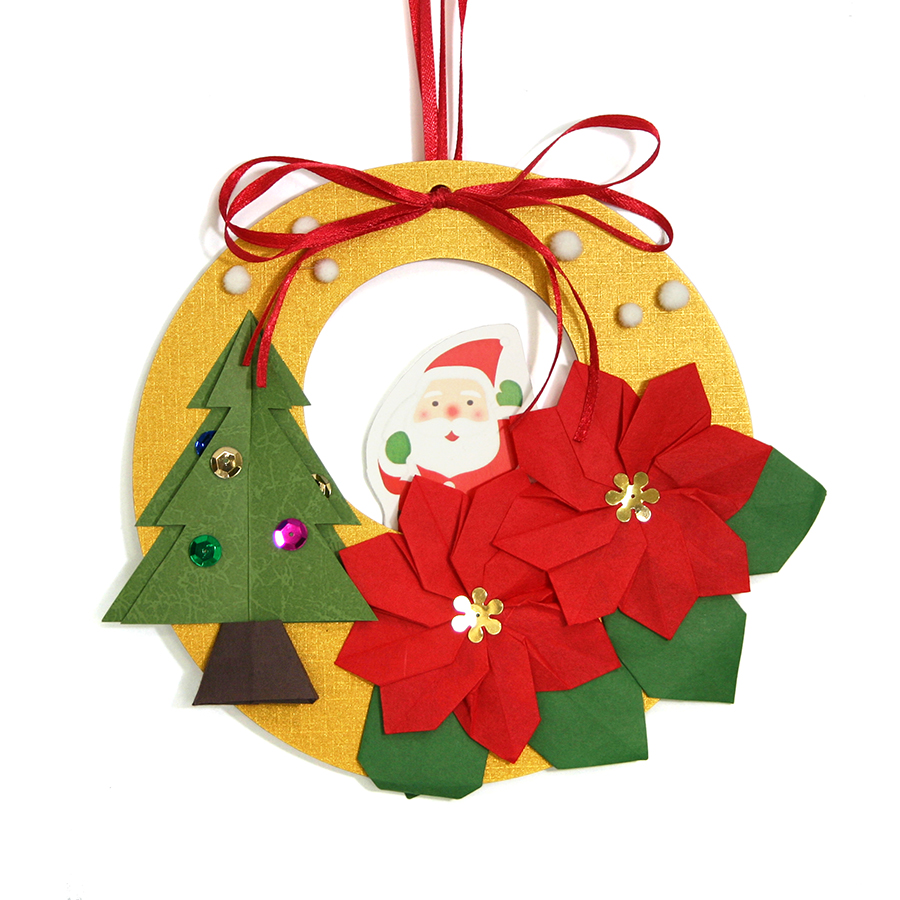 リース飾り 手作キット クリスマス ペーパークラフト 高齢者 大人 お子様 和紙 折り紙