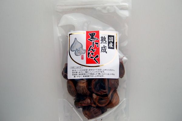 青森県産にんにくをミネラルたっぷりの深層海洋水に漬け込み、温度と湿度の調節だけでじっくりと熟成させた黒にんにくです。余計なものは一切加えていません。