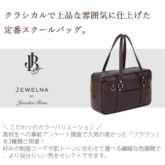 ジュエルナローズ スクールバッグ 合皮 レディース 通学 高校生 中学生 女子 ブラック ブラウン 黒 茶 1-68921