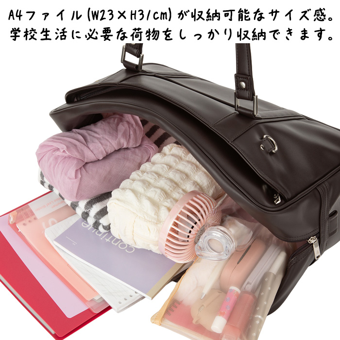 A4ファイル(w23×h31cm)が収納可能なサイズ感で、学校生活に必要な荷物をしっかり収納できます。