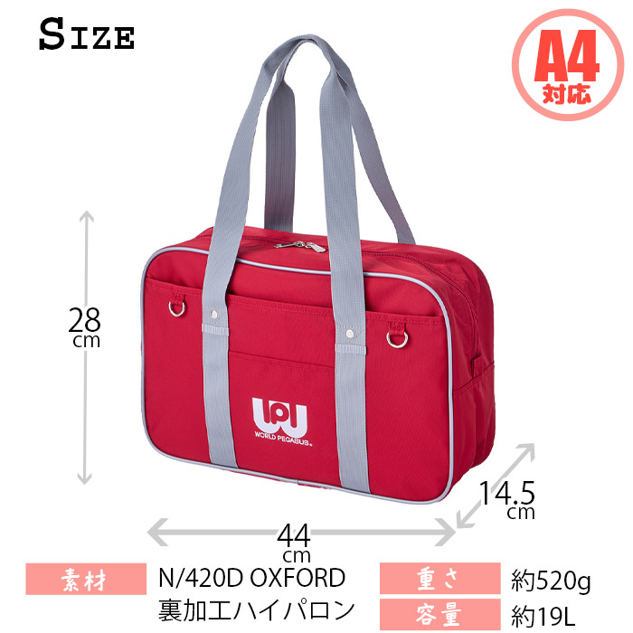 A4対応で、教科書や、お弁当箱など荷物の多い日もラクラク収納できます