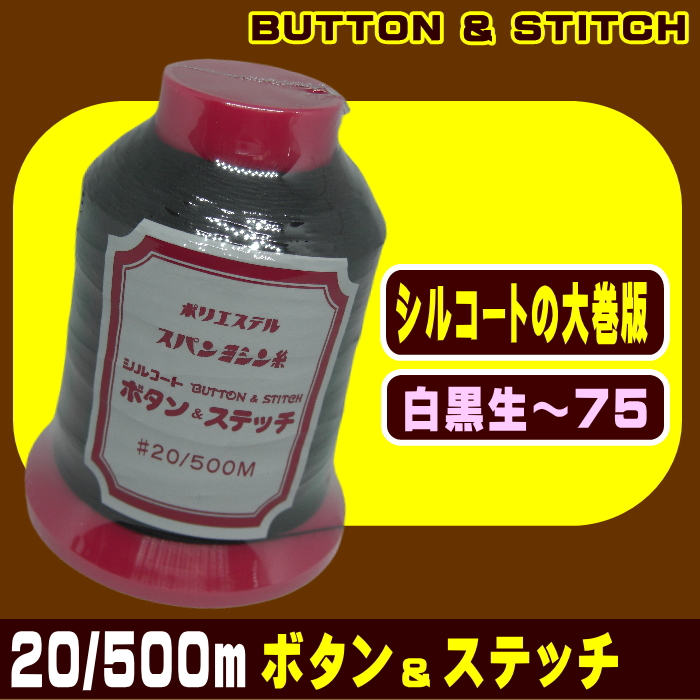 ボタンステッチ20番/500m(ボタン付け糸)白黒生〜75