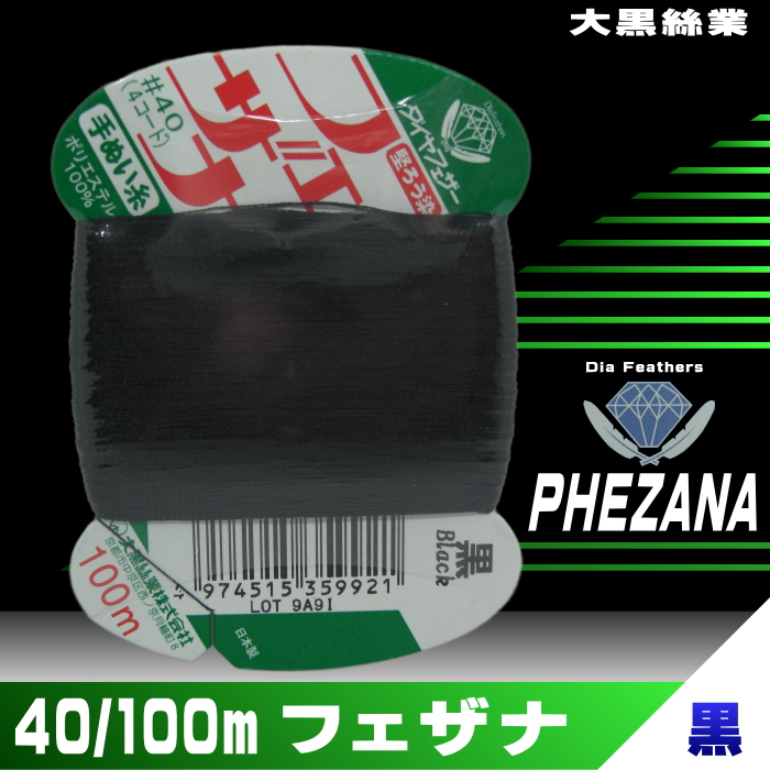 【手縫い糸/カード巻】フェザナ40番/100m(黒色)