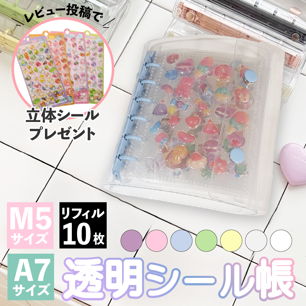 シール帳 バインダー 台紙 透明シール帳 透明 a7 a5 リフィル 10枚 はがせる 二つ折り ミニシール帳 6穴 シール かわいい シールバインダー クリア