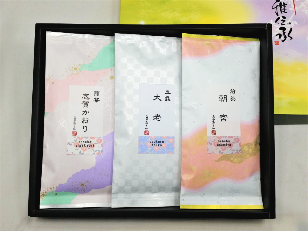 内容量 煎茶志賀かおり・煎茶朝宮・玉露大老 各100g