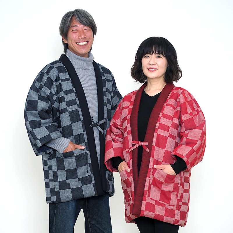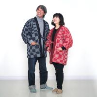 織り上げた華市松を使用した長袖はんてん。