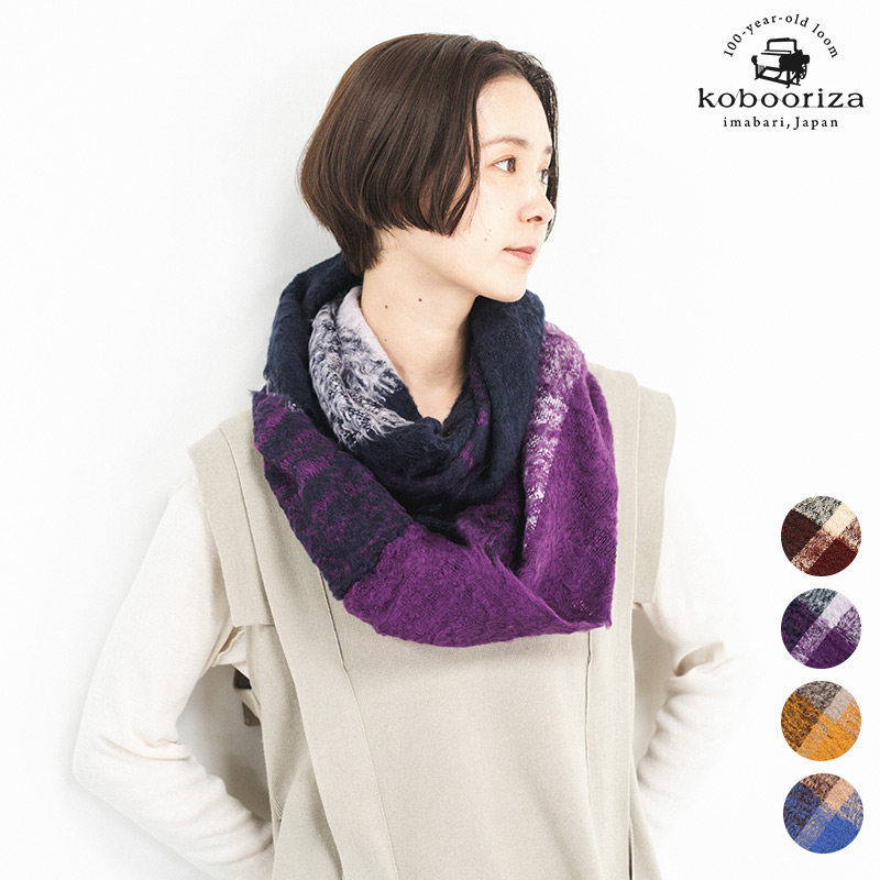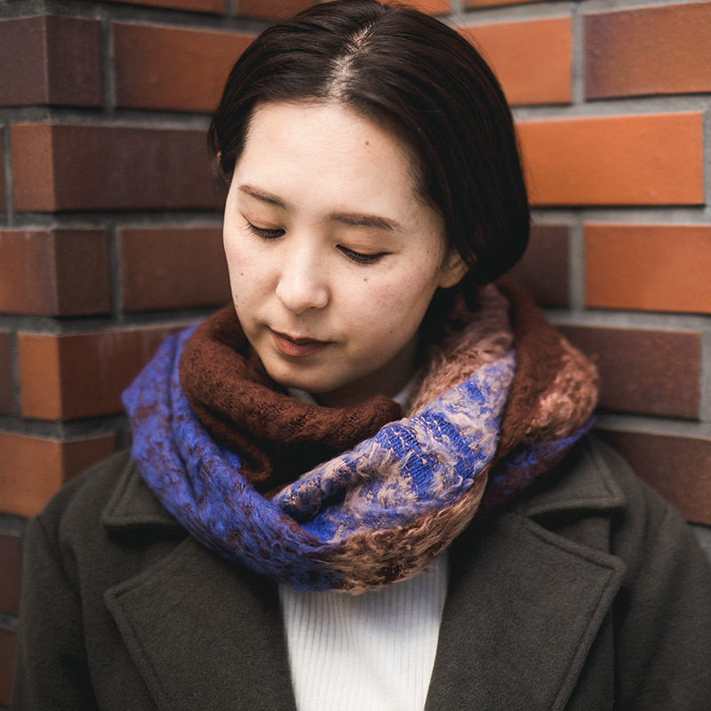 工房織座がつくる、見た目からもあたたかみを感じる、ふかふかのコットンスヌードです。