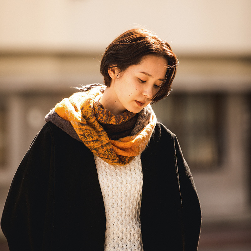 ・このスヌードには、古くからヨーロッパで高級起毛製品に使われてきた「チーゼル」という植物を採用。