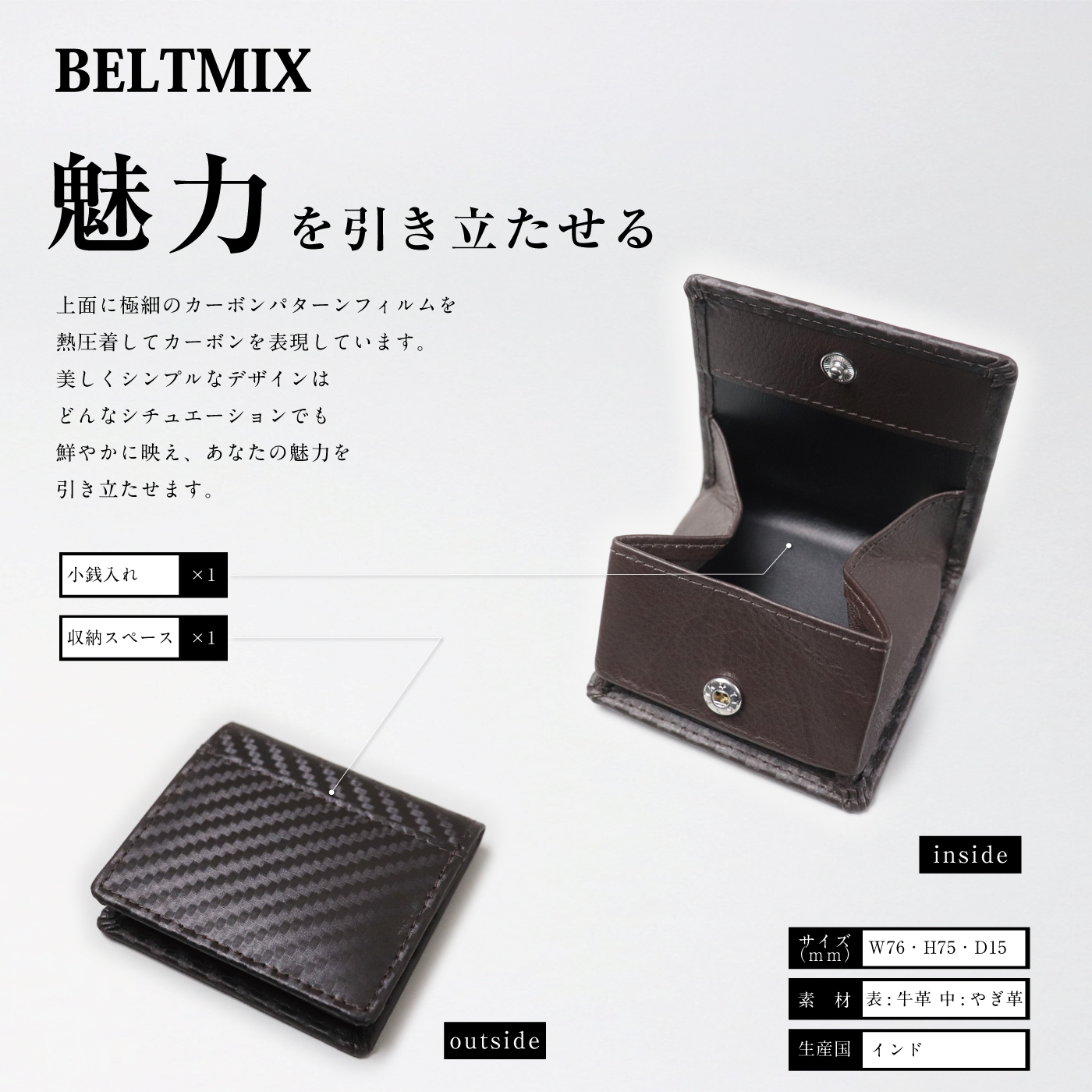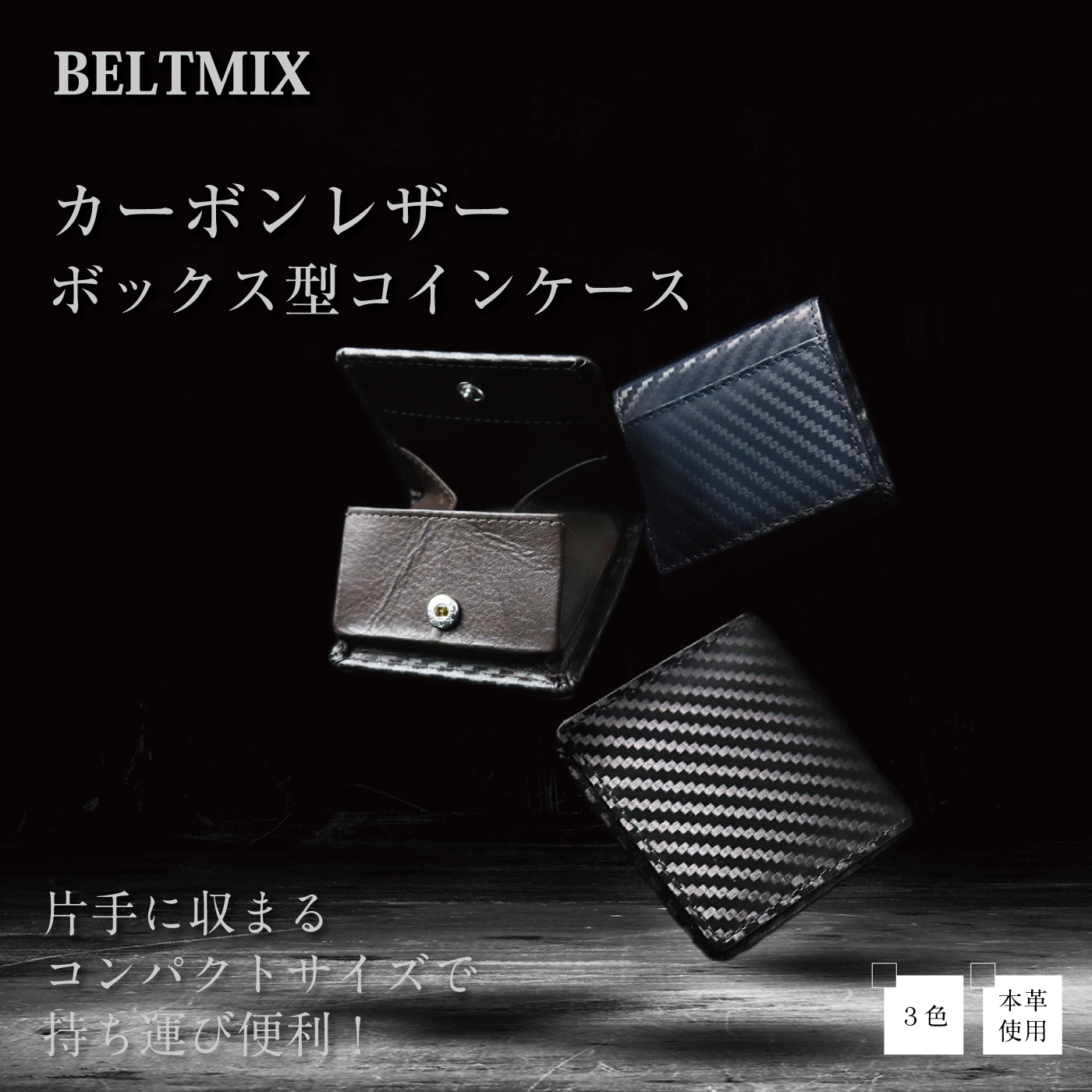 小銭入れ メンズ 本革 カーボン レザー ボックス型 コインケース 薄型 コンパクトサイズ 紳士 ビジネス