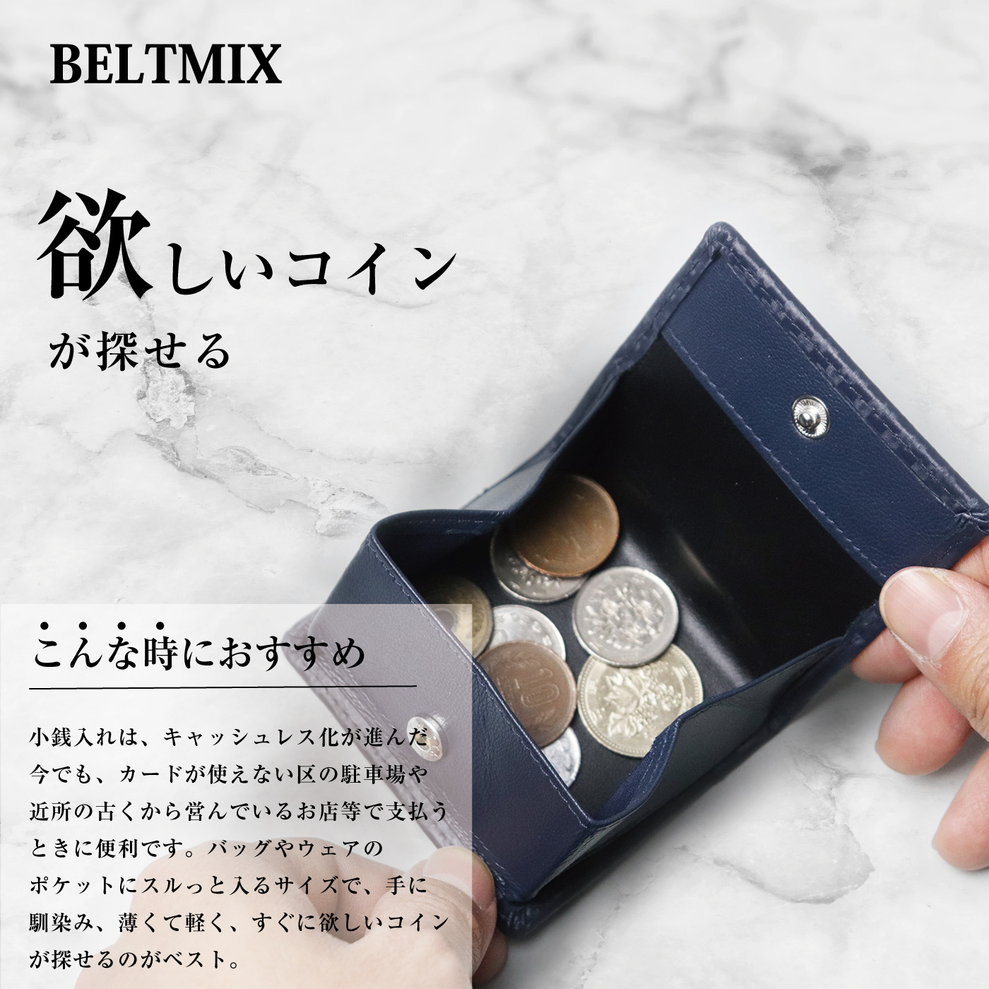 小銭入れは、キャッシュレス化が進んだ今でも、カードが使えない区の駐車場や近所の古くから営んでいるお店等で支払うときに便利です。バッグやウェアのポケットにスルっと入るサイズで、手に馴染み、薄くて軽く、すぐに欲しいコインが探せるのがベスト