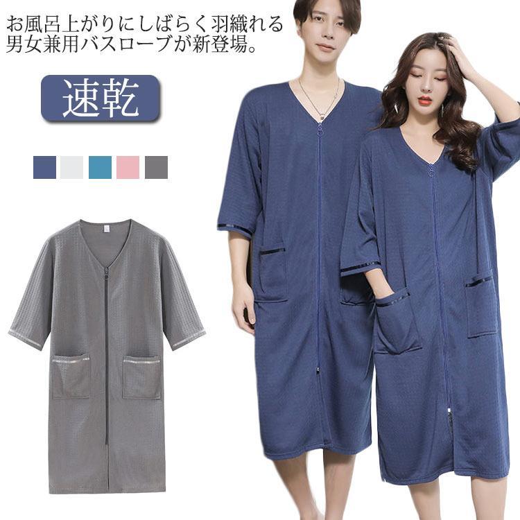 バスローブ ガウン レディース メンズ 夏春秋 薄手 コットン 男女兼用 部屋着 ルームウェア ロング 前開き ジップアップ ワッフル生地