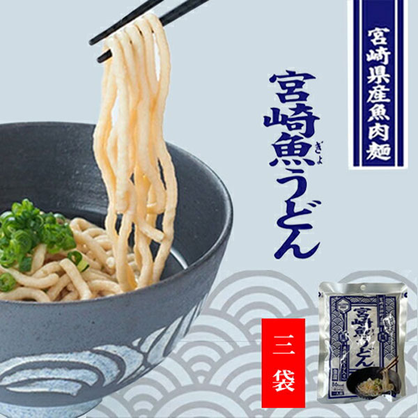 グルテンフリー うどん 【 宮崎 魚うどん 3袋セット 】 小麦粉不使用 低脂肪 送料無料 常温 カツオ・昆布の麺つゆ付き