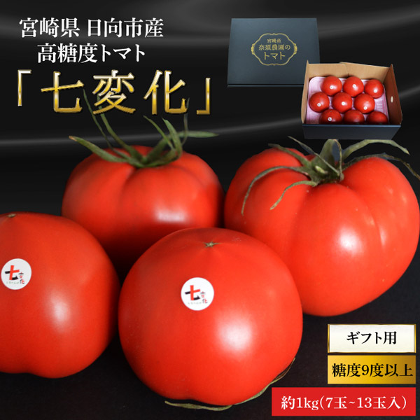 宮崎県 日向市産 高糖度トマト 「七変化」約1kg(7玉〜13玉入) 【ギフト用】【 糖度9度以上】第4回全国トマト選手権ミディアム部門にて銀賞受賞!