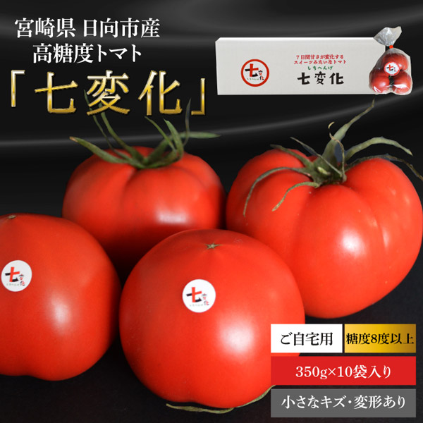 宮崎県 日向市産 高糖度トマト 「七変化」350g×10袋【ご自宅用】【 糖度8度以上】【小さなキズ・変形あり】第4回全国トマト選手権ミディアム部門にて銀賞受賞!