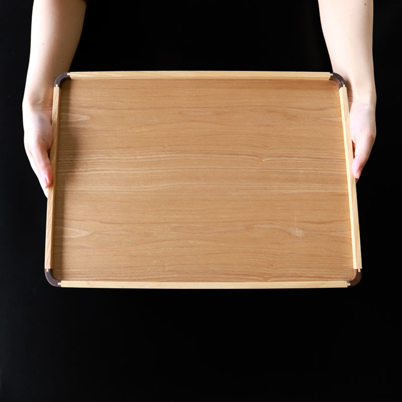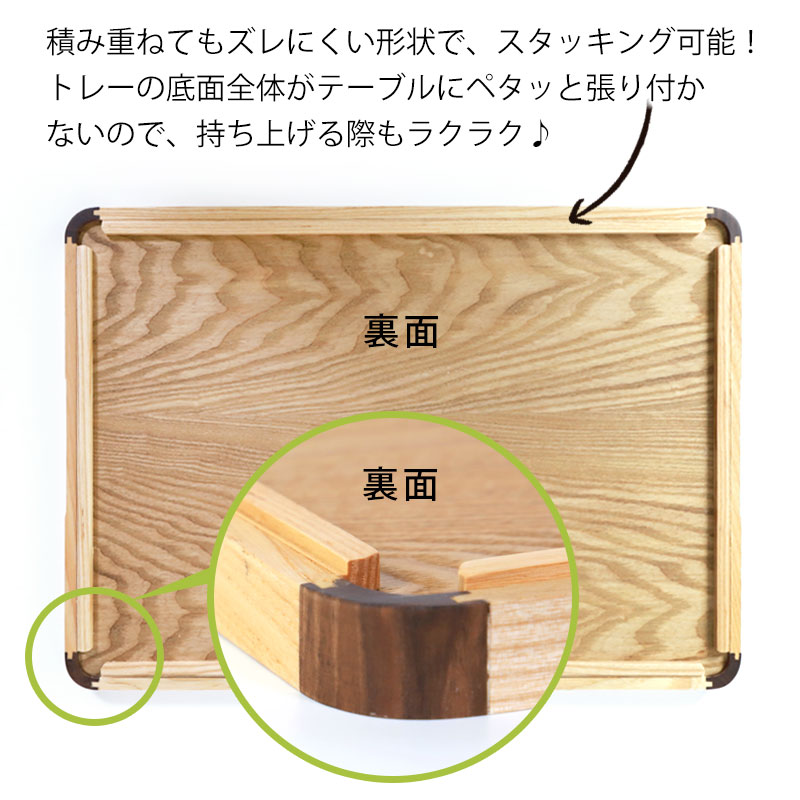 ノンスリップ加工を施した木製トレイ。