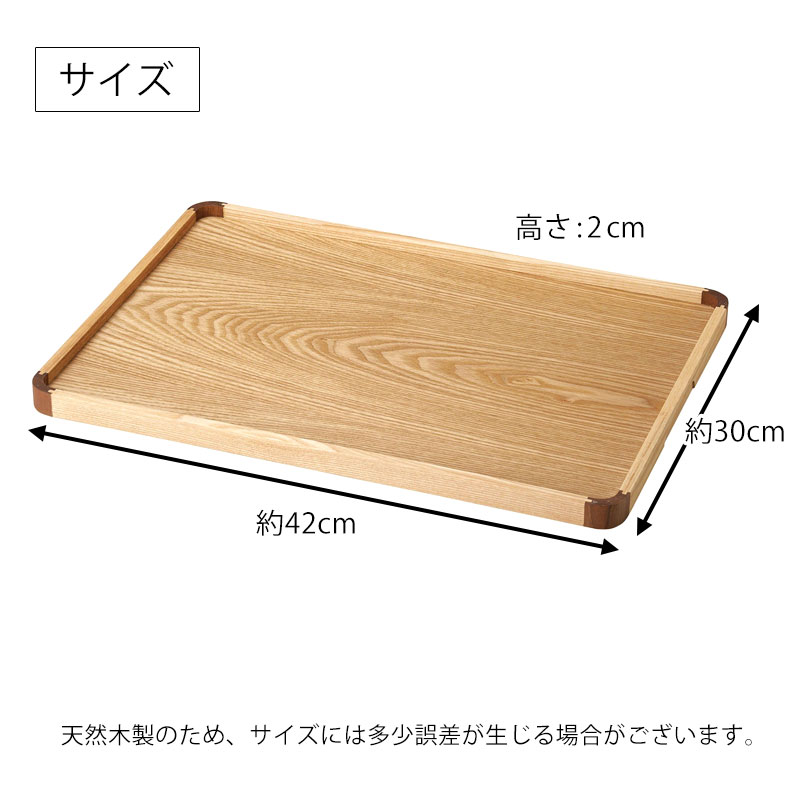 トレー 天然木製 42cm 大 お盆 ノンスリップ すべり止め加工 滑らない 滑り止め コンビネーショントレイ 北欧風 カフェ 角型 長方形 トレイ おぼん ナチュラル