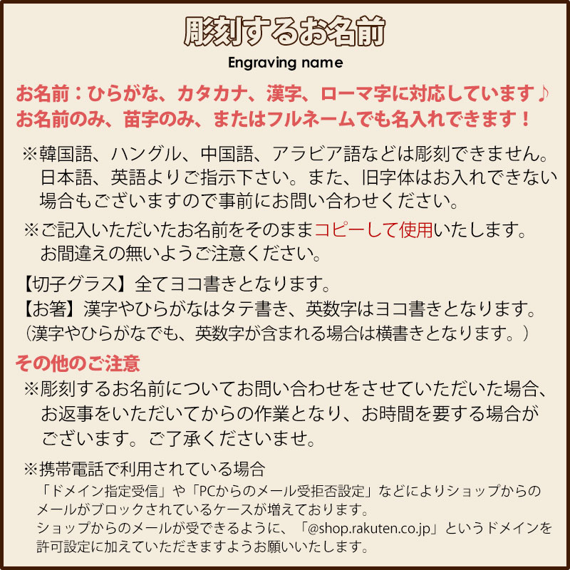 ※ご記入いただいたお名前をそのままコピーして名入れを行います。記入間違いにご注意ください。