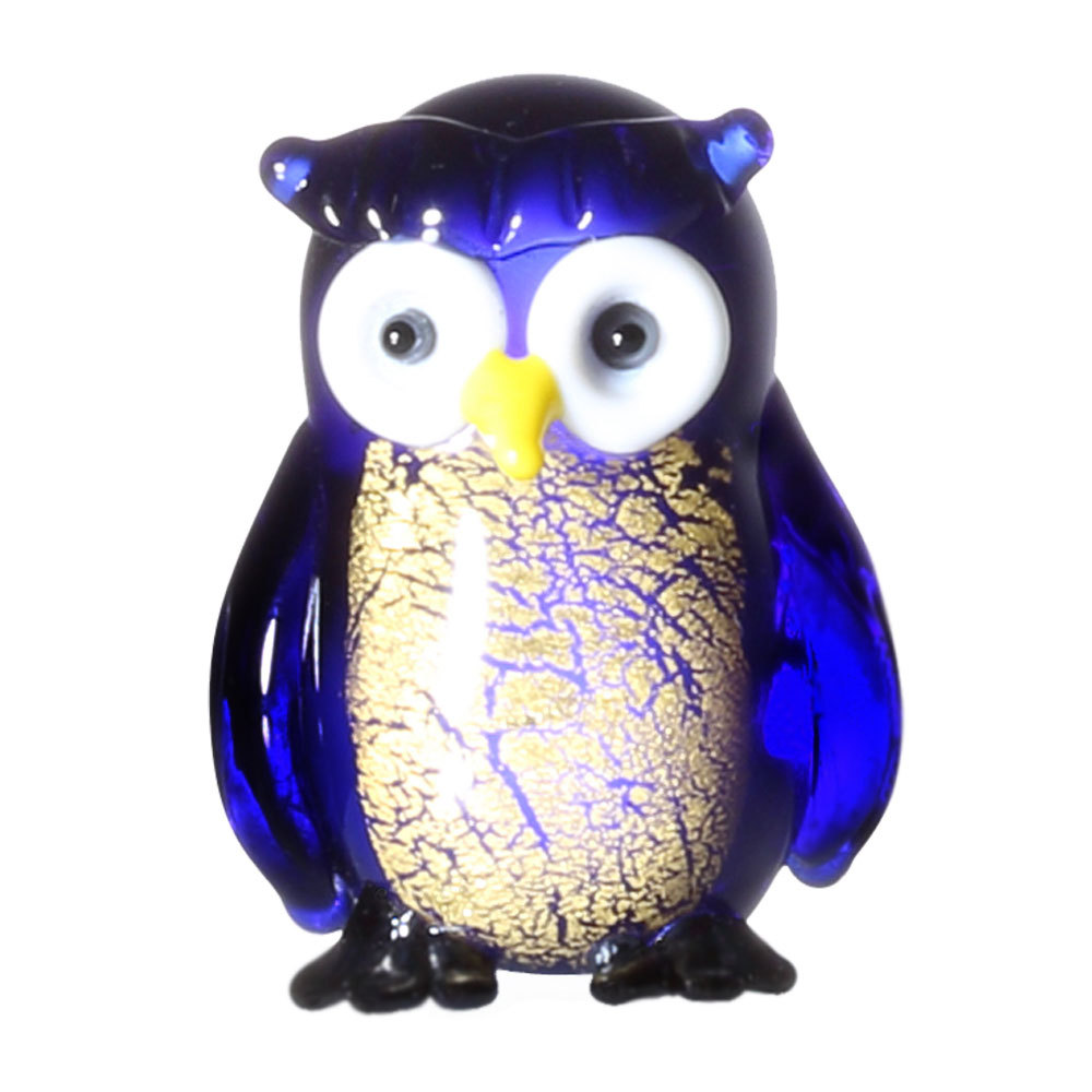 50%OFF フクロウ ガラス 置物 インテリア雑貨 ふくろう 梟 ブルー 青 開運 金箔 縁起物 幸せ 幸福 不苦労 ガラス細工