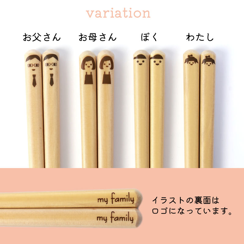 お父さん、お母さん、ぼく、わたし。 家族でお揃いに出来るお箸です。