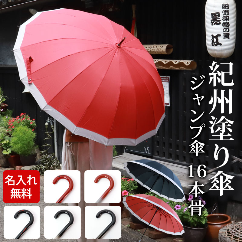 持ち手に紀州塗りを施した「紀州漆器アンブレラ」。 漆器といえば、取り扱いが難しいイメージがあるかもしれませんが、紀州漆器は丈夫で扱いやすさが特徴ですので、傘にも適しています。 職人の手でひとつひとつ丁寧に作り上げられた持ち手は、ひとつとして同じものはありません。 塗り職人の手作りの味わいをお楽しみください。