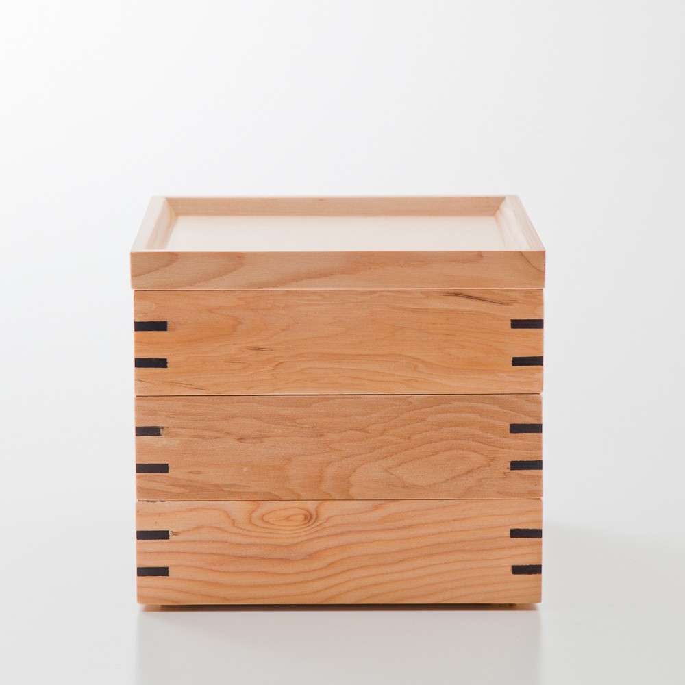 形状はシンプルなサイコロ型の三段重ですので、使いやすいです。
