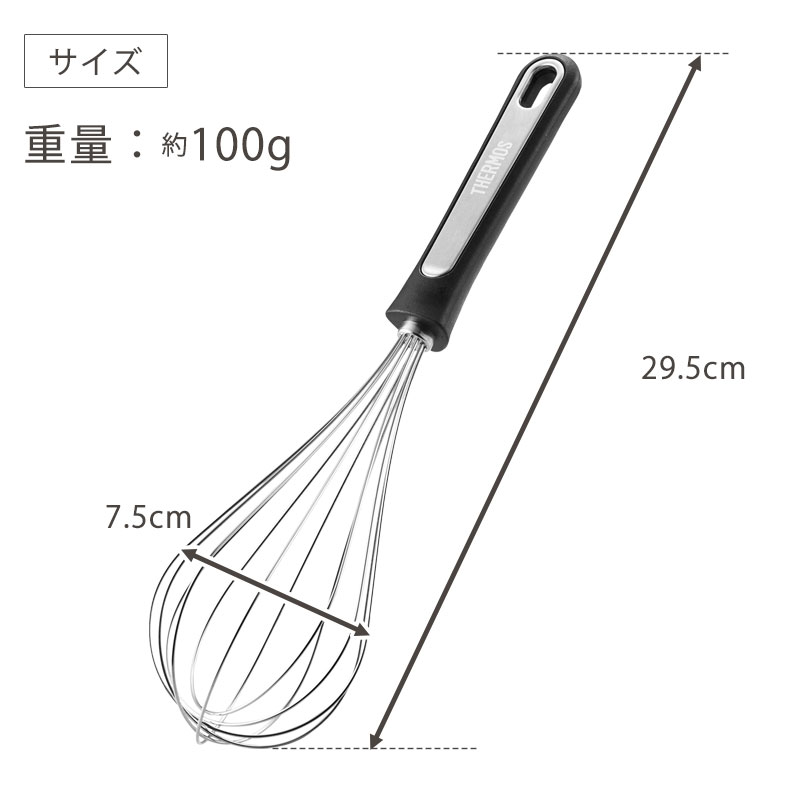 5%OFF THERMOS サーモス 泡立て器 レギュラーサイズ 29.5cm ホイッパー 三角グリップ 取っ手 食洗機対応ツール用品 KT-W001 BK