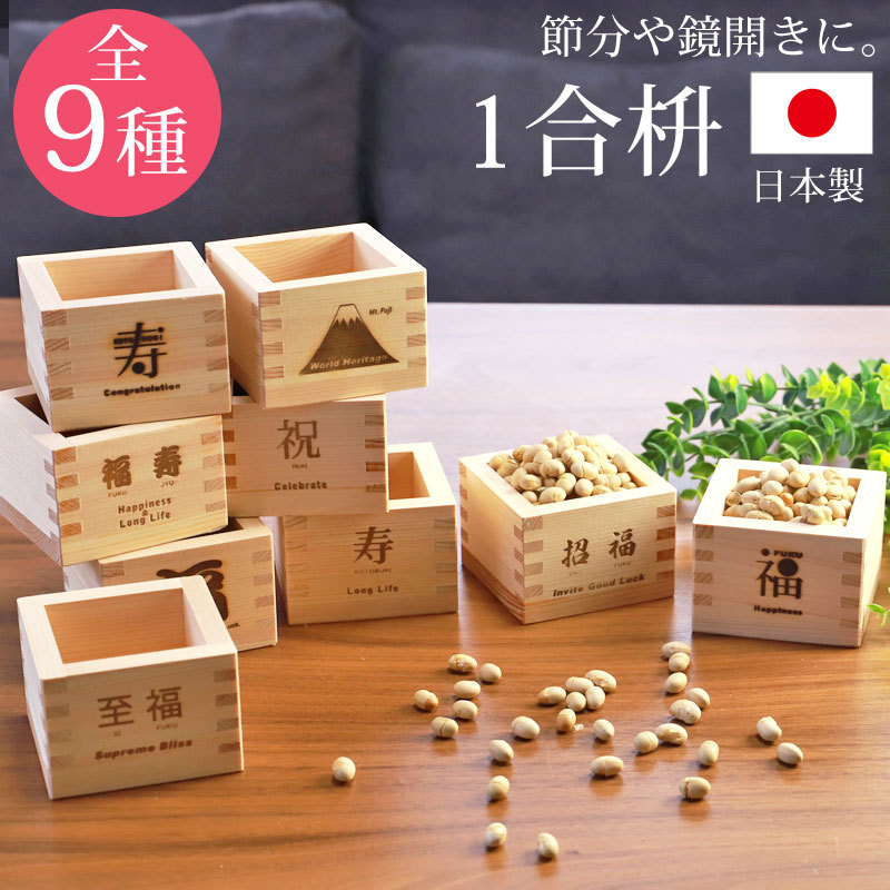 一合枡焼印 単品 無塗装 檜 ひのき 日本製 国産 縁起 1合 枡 桝 節分 豆まき 鏡開き 日本酒 枡酒杯 升 祝桝 厄除け 結婚式 祭り 天然木製