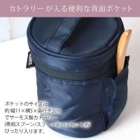 カトラリーが入る便利な背面ポケット付! ポケットのサイズは約 縦11×横5×奥行き2cmでサーモス製カトラリー(専用スプーン/スプーン&ハシセット)がぴったり入ります。