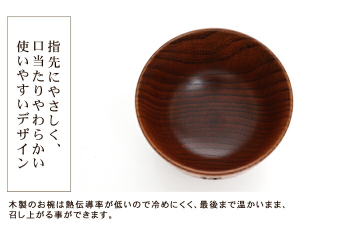 お椀の素材にもこだわっています。贅沢に天然の木をくりぬき、数回に渡り漆を塗って仕上げています。 お椀の形状は『羽反り型(ハソリガタ)』ですので、初めての手にもすぐになじみ、口元まで自然に運べます。 木製のお椀は熱伝導率が低いので冷めにくく、最後まで温かいまま召し上がる事ができます。 独特の木の感触も楽しめ、普段の食事も上質なものになりますね。 いつものお味噌汁がぐーんっと美味しくなりますよ。 専用のギフトボックス入りです。どんな人やシーンにも贈りやすいギフトセットです。 敬老の日、母の日、父の日、お誕生日プレゼントに大人気です! |