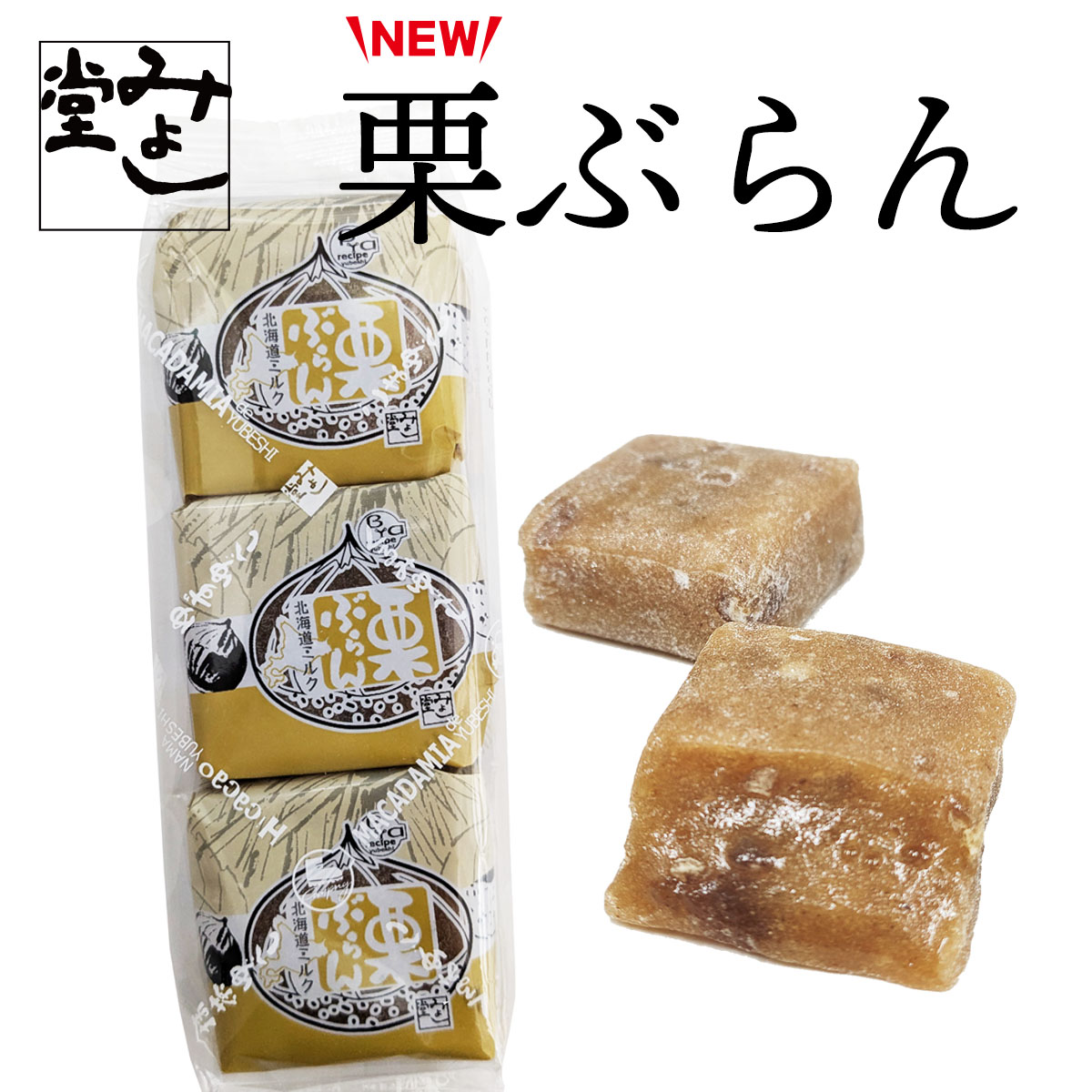 マロングラッセ(イタリア製造)、砂糖、水飴、もち粉、栗、乳製品(乳成分を含む)、還元水飴、粉末オブラート、醤油(福島県産大豆を使用)/加工でんぷん、ソルビトール、トレハロース