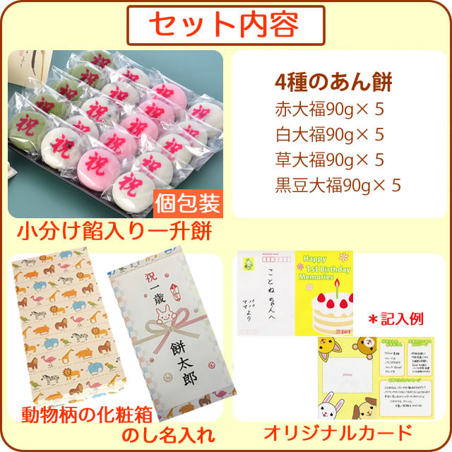 4種のあん餅 一升餅 一生餅 小分け あんこ 個包装1歳の誕生日のお祝い お 誕生餅 セット 20個入り 一升餅小分け 北海道産もち米使用 冷凍