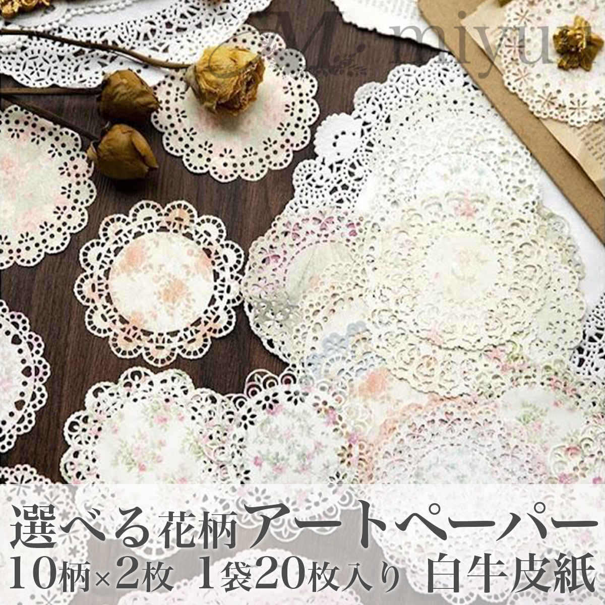 紙モノ コラージュ素材ペーパー レースペーパー 花 柄 アンティーク コラージュ レトロ 紙もの 海外 ラッピング アートペーパー ビンテージ 20枚入