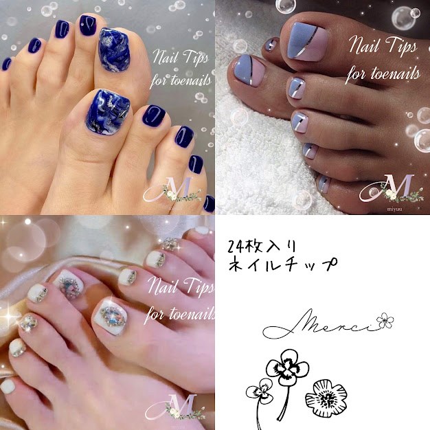 ネイルチップ ジェルネイル ペディキュア フット ネイル 足 付け爪 マーブル ななめフレンチ ランバス 韓国ネイル おしゃれ