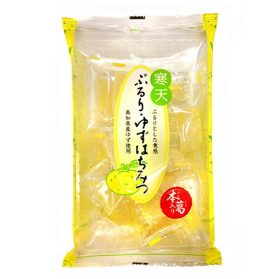 原材料:水飴、砂糖、でん粉、もち米粉(国内産)、粉末オブラート、はちみつ、ゆず(高知県産)、葛粉、寒天、ゲル化剤(加工でん粉、増粘多糖類)ベニバナ黄色素、香料、クエン酸、(原材料の一部に大豆を含む)