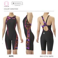 初級スイマーへ向けた「AQUA RACING」シリーズ。公式大会に出場するために必要なWORLD AQUATICS(世界水泳連盟)承認モデルの競泳水着。伸びのあるフィット感を実現したニット素材AQUASTRIPE-Dを採用。安心感のある地厚な生地で塩素に強く長持ちし、はっ水加工でシャープな水切れが特徴。初めてレースに出場するスイマーにオススメ。着脱が楽で肩紐がずれにくい着やストラップを搭載。アシンメトリーなキレイで美しい曲線的な切り替えが特徴。切り替え部分にネオンのようなランダムなロゴを表現した総柄デザイン。