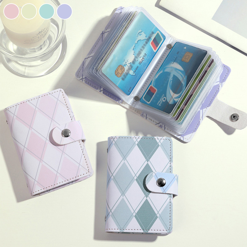 メール便送料無料 カードケース レディース スリム 20枚カード収納可能 20ポケット 見やすい アーガイル柄 チェック パステル 横入れ スナップボタン コンパクト ポイントカード入れ クレジットカードケース カードホルダー ICカード 保険証 定期入れ 可愛い 大学生
