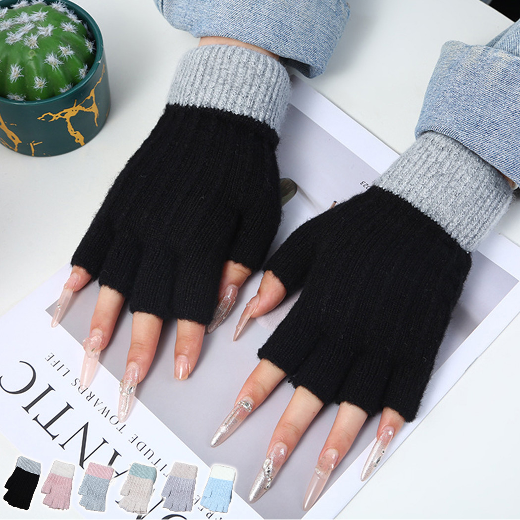 メール便送料無料 手袋 レディース 暖かい 手ぶくろ てぶくろ グローブ スマホ対応 パソコン 指なし 防寒 寒さ対策 裏起毛 ニット ハンドウォーマー 手首 リブ 配色 カラーブロック デイリー 普段使い 通勤 OL 通学 学生 自転車 クリスマス 誕生日 プレゼント ギフト 小物 黒 白 秋冬