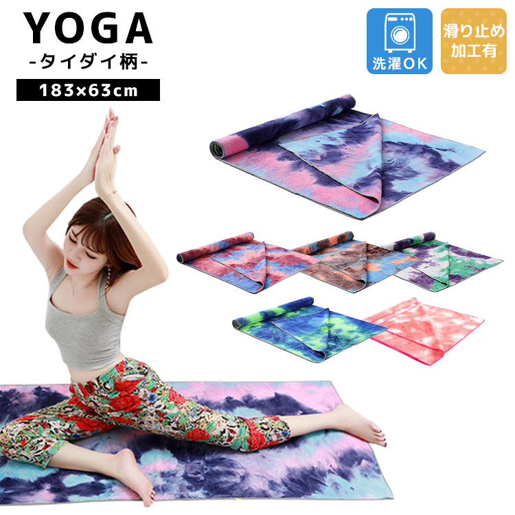 ホット ヨガ タオル ラグ 収納袋 2点セット 大判 かわいい タイダイ柄 裏面 滑り止め スポーツ トレーニング エクササイズ 183cm×63cm