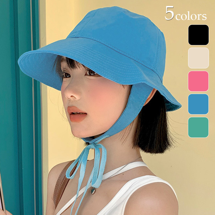 バケットハット 帽子 レディース きれいめ 顎 紐付き ストラップ つば 長 紫外線対策 日焼け防止 360° 日よけ 折りたたみ 黒 春 夏