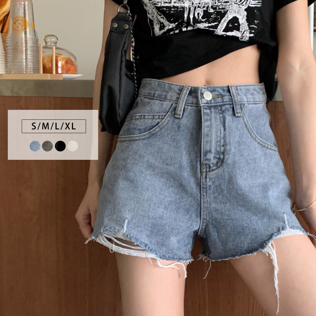 メール便送料無料 黒 白 薄手 シンプル 無地 ダメージ加工 カットオフ 脚長効果 ポケット 付き ショーパン 普段使い デイリー メンズライク 抜け感