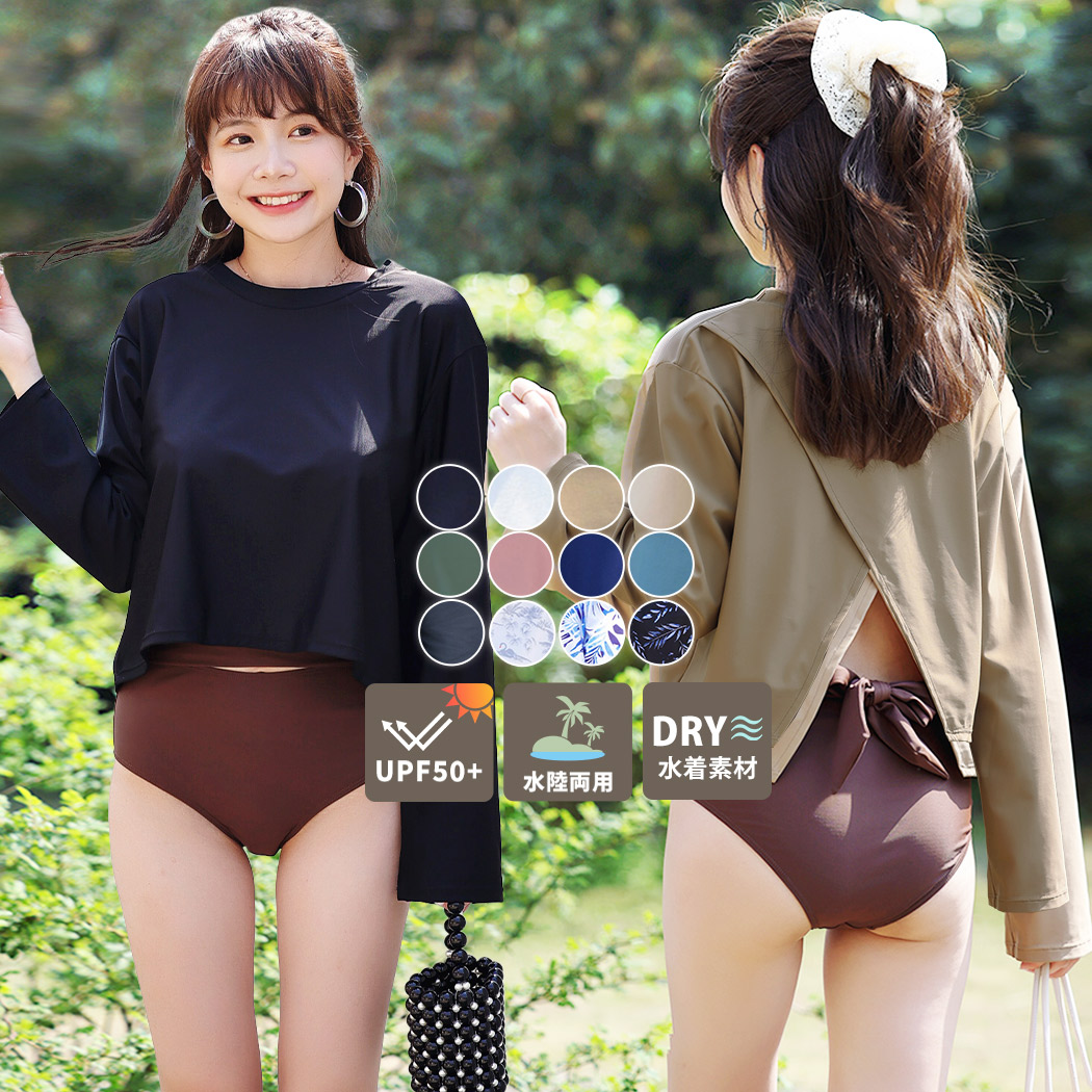 ラッシュガード レディース 長袖 おしゃれ トップス 体型カバー ビーチ 夏 水陸両用 無地 防寒 対策 水着の上に着る服 黒 白
