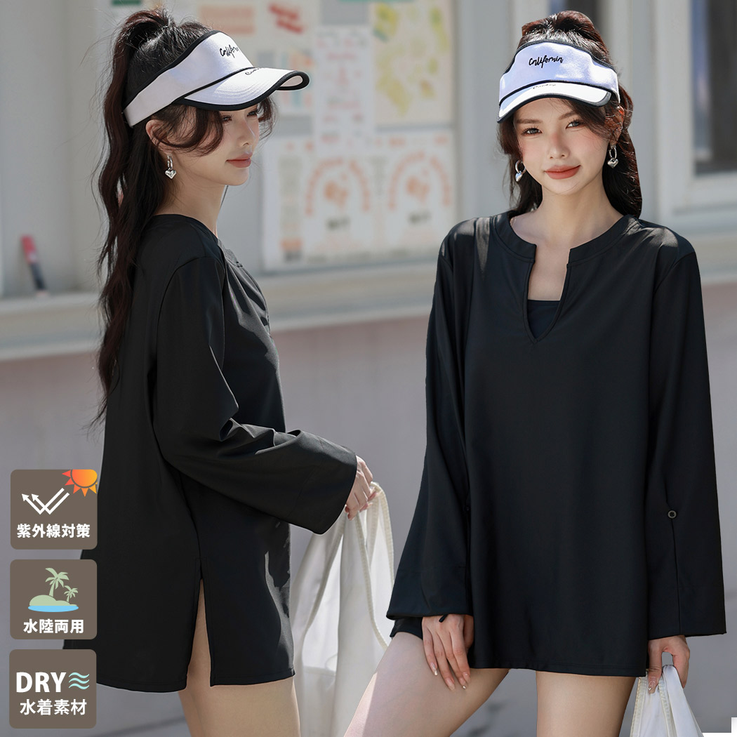 メール便送料無料 水着通販ストア ラッシュガード レディース トップス 長袖 ママ 水陸両用 かわいい おしゃれ フードなし 体型カバー 水着の上に着る服 黒