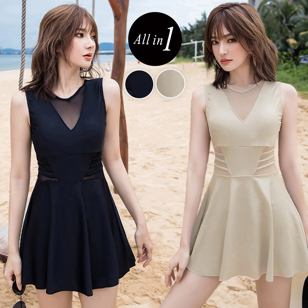 レディース 水着 スリーブレス 透け シースルー カットアウト 背中見せ お腹 お尻 太もも 脚 カバーアップ