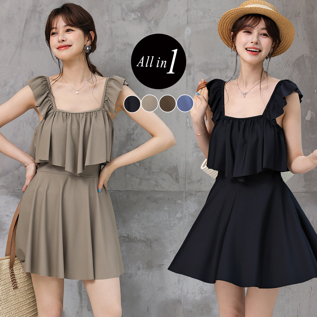 ふんわりバストカバーフレアストラップ&たっぷりフレアな胸元で華奢見えできるひらっと大人フェミニンデザイン。