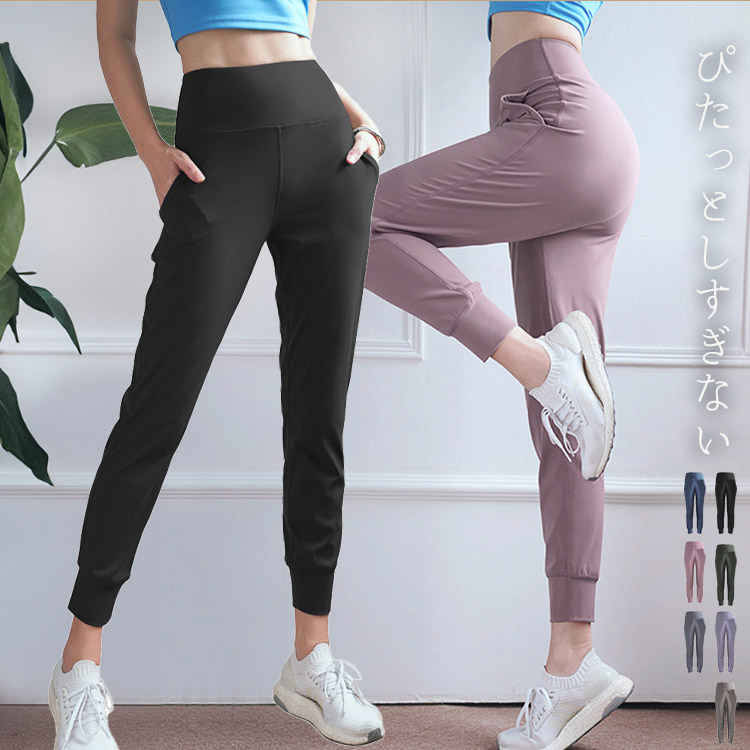 メール便送料無料 ヨガ パンツ ヨガウェア ジョガーパンツ レディース レギンス トレーニング スポーツ ハイウエスト 伸縮性 股上深め ポケット 無地 速乾 吸汗 フィットネス スポーツウェア ピラティスウェア ダンス エクササイズ ジョギング ランニング 中厚手 黒 リラックス フィット